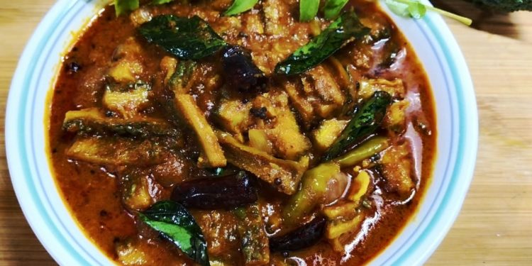Bitter gourd/Pavakkai has many nutrients and health benefits. The only negative is that it can be very bitter hence the name. You can reduce the bitterness with the proper mix of spices. This recipe is a delicious dish from the Kerala cuisine.