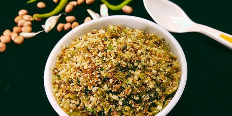 Thecha is a spicy condiment prepared across the states of Maharashtra, Rajasthan, Madhya Pradesh and parts of Karnataka and Andhra Pradesh. It has many variants but the primary ingredients are chili peppers (green or red) and garlic, often tempered in oil and a multitude of spices such as cumin, sesame seeds, hing, cloves and grated coconut seasoning. Traditional recipes call for the ingredients to be crushed or pounded in metal or stone pastels, but modern kitchens often rely on grinding in food processors. It is served with dishes like pithla bhakri. What I am trying here is a Thecha with Peanuts. It goes very well with Bhakri.