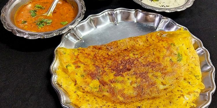 Dosa is a very popular South Indian dish which is served as a breakfast. It can also be served as evening tiffin. And people serve it as dinner also. And the varieties of Dosa preparations cannot be counted easily – innumerous. I have already posted around 11 such Dosa recipe so far. Generally Dosa preparation starts with soaking rice and Urad Dal for 8 to 12 hours. But, there are instant preparations also. We will see one such preparation for Dosa with Wheat Flour and Poha. It will definitely be a tasty Dosa. Try it.