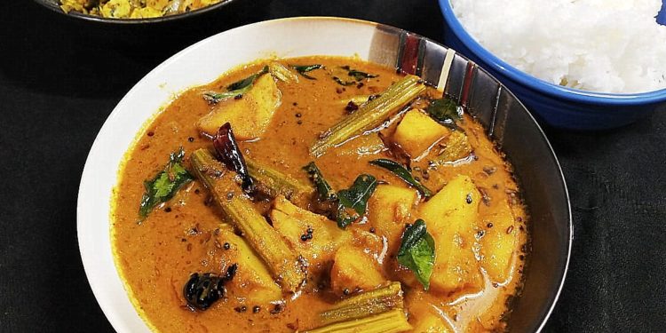 Aloo Drumstick Kuzhambu is a south Indian Dish. It is a very flavorful gravy with roasted and ground paste simmered in a Tamarind gravy. This gravy goes very well with steamed rice. The Drumstick or Moringa added to any dish makes the dish more flavorful. You would love this dish.