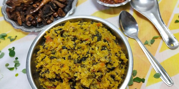 Moringa oleifera is an Indian tree that has been used in traditional medicine for thousands of years. However, only a few of its many reputed health benefits have been studied scientifically. To date, studies show that Moringa oleifera may lead to modest reductions in blood sugar and cholesterol. It may also have antioxidant and anti-inflammatory effects and protect against arsenic toxicity. Moringa leaves are also highly nutritious and should be beneficial for people who are lacking in essential nutrients. We can make many recipes with Moringa Leaves. I have already posted some of them. This recipe Murungai Keerai Paruppu Sadham can be prepared in two ways – cook the rice along with the Moringa Leaves in a pressure cooker ; Or cook the leaves separately and the rice and dal separately and then mixing them together. What we will see here the first method.