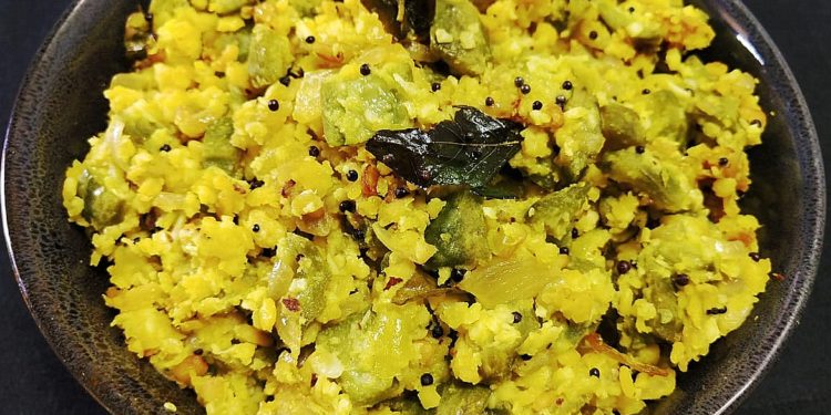 Peerkangai (Ridge Gourd/ Torai) is a popular vegetable in the Indian and Arabic region. It is believed that this vegetable was initially cultivated in the Arabian Desserts and the spread to other regions like Asia, Africa etc. It is also called Ridge Gourd, Turai, Turia, Todka etc in different regions. It is a very high dietary fiber oriented vegetable. It has a dark green exterior with white pulp and white seeds inside. It is always better to use the tender variety. The matured variety would be woodsy and so, not good for making dishes. It is a blood purifier & it has laxative properties. The juice of this vegetable is given to patients who are affected by jaundice. It is definitely a good vegetable for the stomach. We will see here how to make a stir fry using this vegetable with Moong Dal (Green Grams).