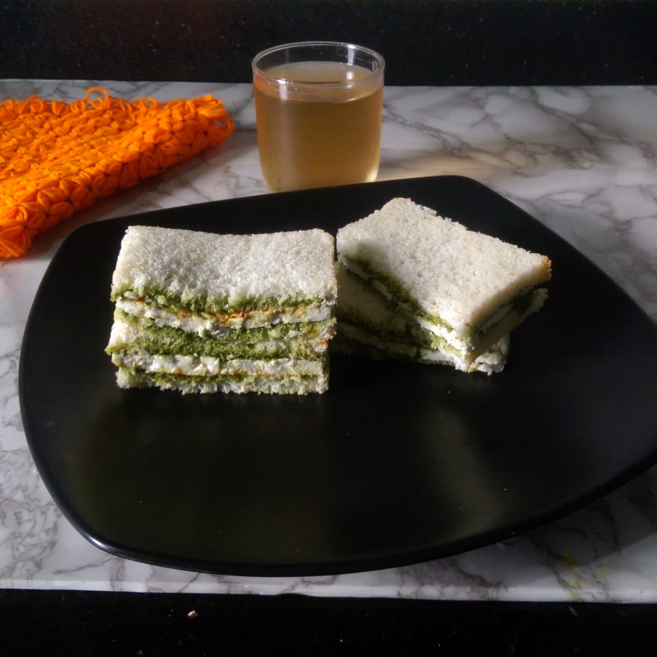 Apply Butter on all the slices of the Bread evenly. Spread the Green Chutney evenly on the slices on one side of the slices. Place the Paneer slices above it.