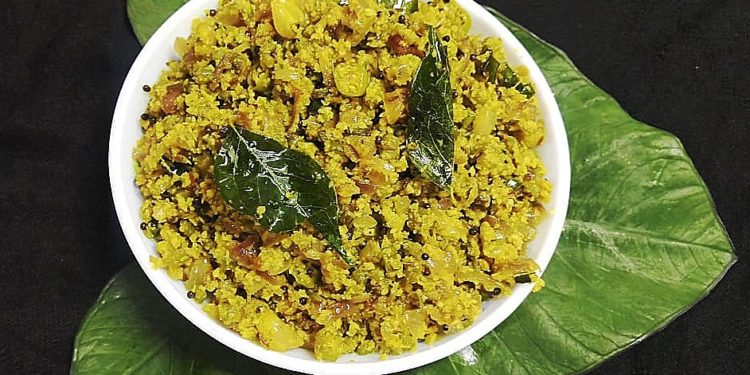 I always like to use every part of the vegetable as possible if it is nutritious. Usually, people use the taro leaves (arbi leaves) and discard the stems. Next time, you can just chop the stems up and store it to make a deliciously nutritious dish the next day. I love this dish as the taro stem is rich in fiber content. Taro is generally grown in the backyard of every house in the Kerala region. The stem is too thick – about an inch in diameter. It is slit and chopped to make this dish.