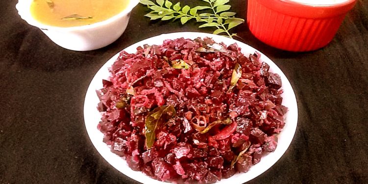 Vegan Beetroot Stir Fry with Coconut/ Beetroot Poriyal with Coconut